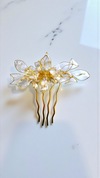 Découvrez le Peigne Eve, l'accessoire indispensable pour une mariée rock ! Avec ses feuilles transparentes ou nacrées au choix , il ajoutera une touche hors du commun à votre look. Ne laissez pas passer l'occasion d'être unique le jour de votre mariage avec le Peigne Eve.
